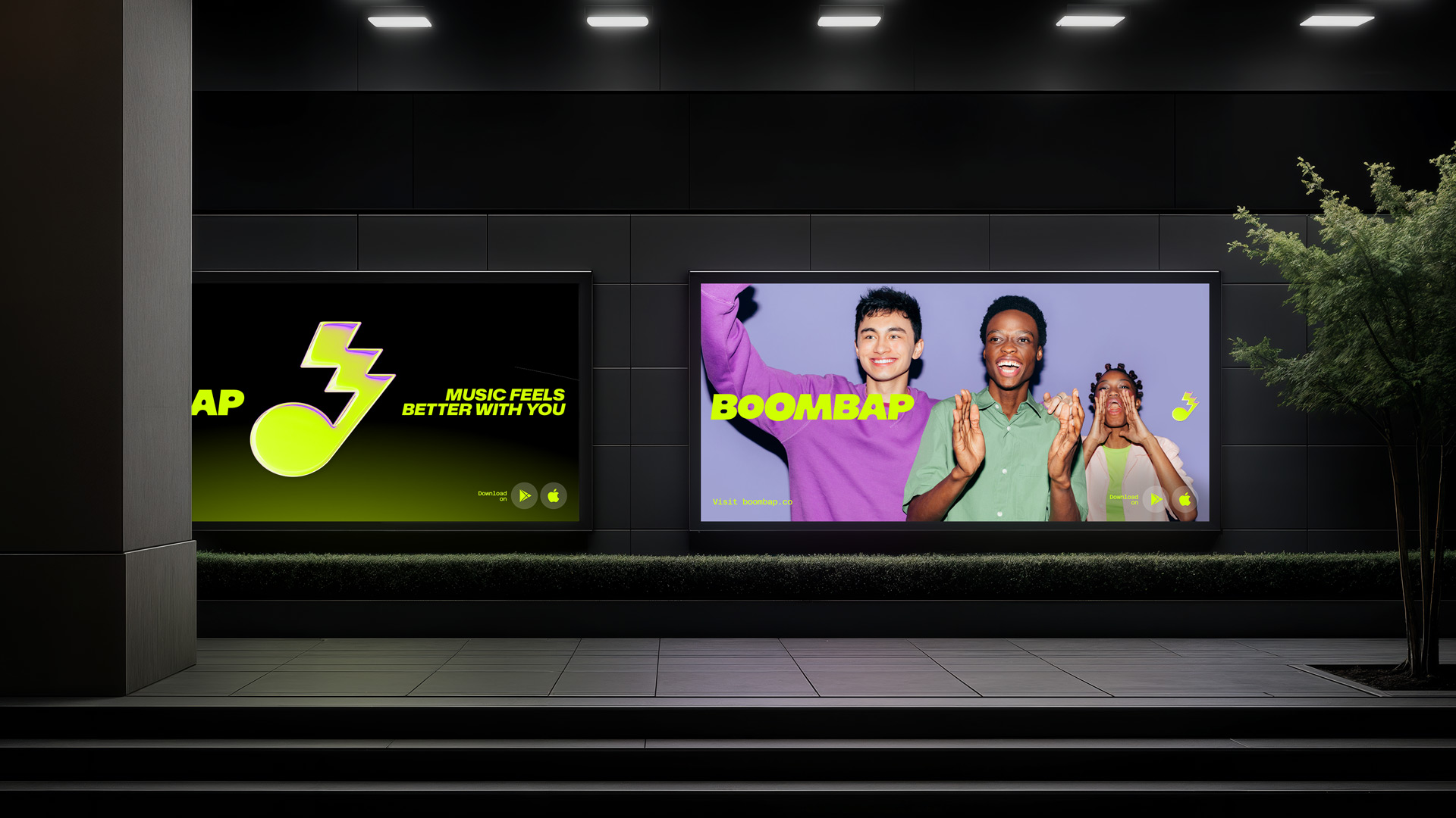 We built the brand around the idea "Music feels better with you". Our toolkit combines an iconic note with a bold colour palette featuring a vibrant electric lime, strong and dynamic typography and a set of eclectic assets including 3D icons, quirky animations and a fresh set of brand images. We consulted on the UX/UI of the app and helped the team launch to an audience of thousands of high-schoolers on February 6. As the team was at seed stage and the budget was limited, Awe Studios built all assets and animations in-house.